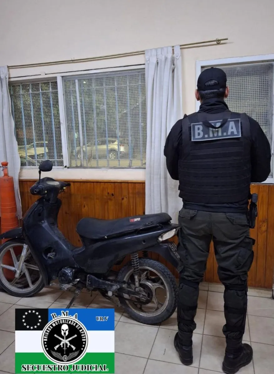 Al verificar el rodado, una motocicleta marca Keller 110cc, se constató a través del sistema que registraba pedido de secuestro vigente desde el 25 de febrero de 2025, solicitado por la Comisaría 43° de Cinco Saltos en el marco de una causa por hurto.