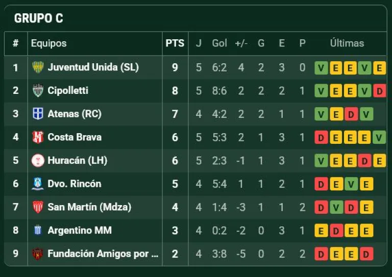 En una zona muy pareja, Cipo se está acomodando en los puestos de clasificación para los play offs del torneo Federal A. Transcurridas cinco fechas, se ubica en la segunda colocación, con ocho puntos, producto de dos victorias, dos empates y una derrota.